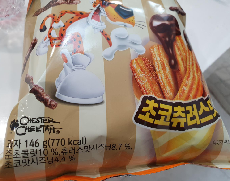 다음에는 치토스 초코 츄러스맛 대신에 인기가 있다는 꼬북칩 초코츄러스 맛을 먹어보고 싶어요.