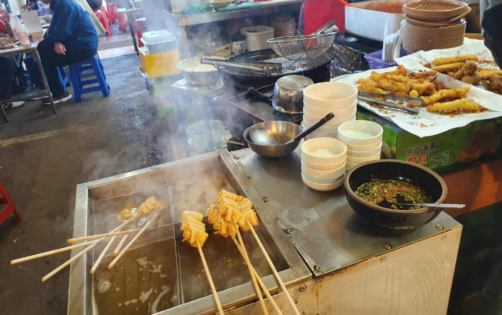 갓 튀겨낸 튀김류랑 떡볶이, 오뎅, 어묵 정말 맛있겠어요.