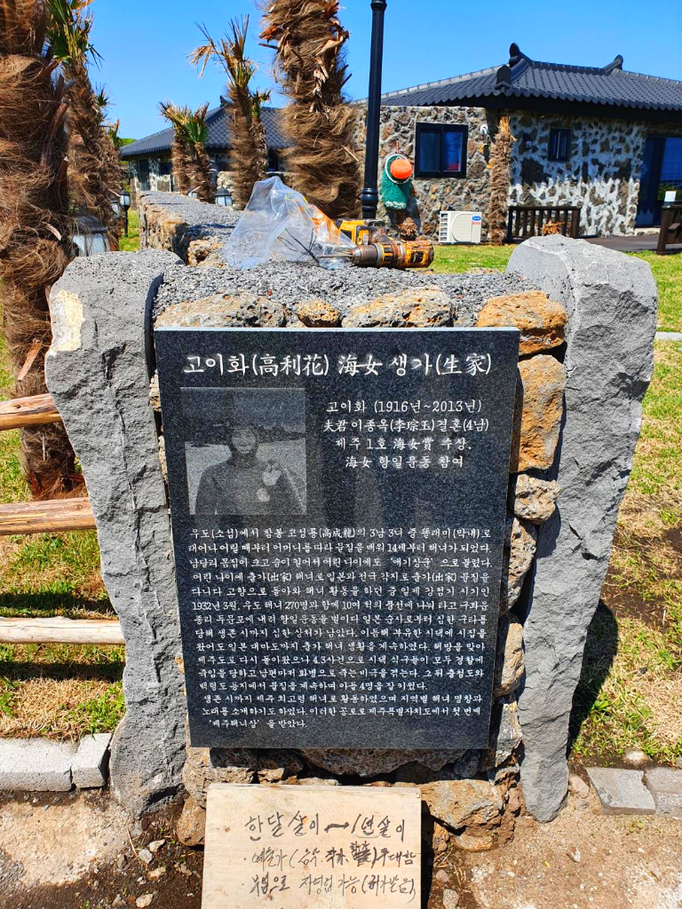 그냥 갈 수 없어 이 마을에서 유채꽃이 활짝 핀 곳으로 찾아 왔더니 제주도에서 첫번째 제주해녀상을 받은 고이화 생가였어요.