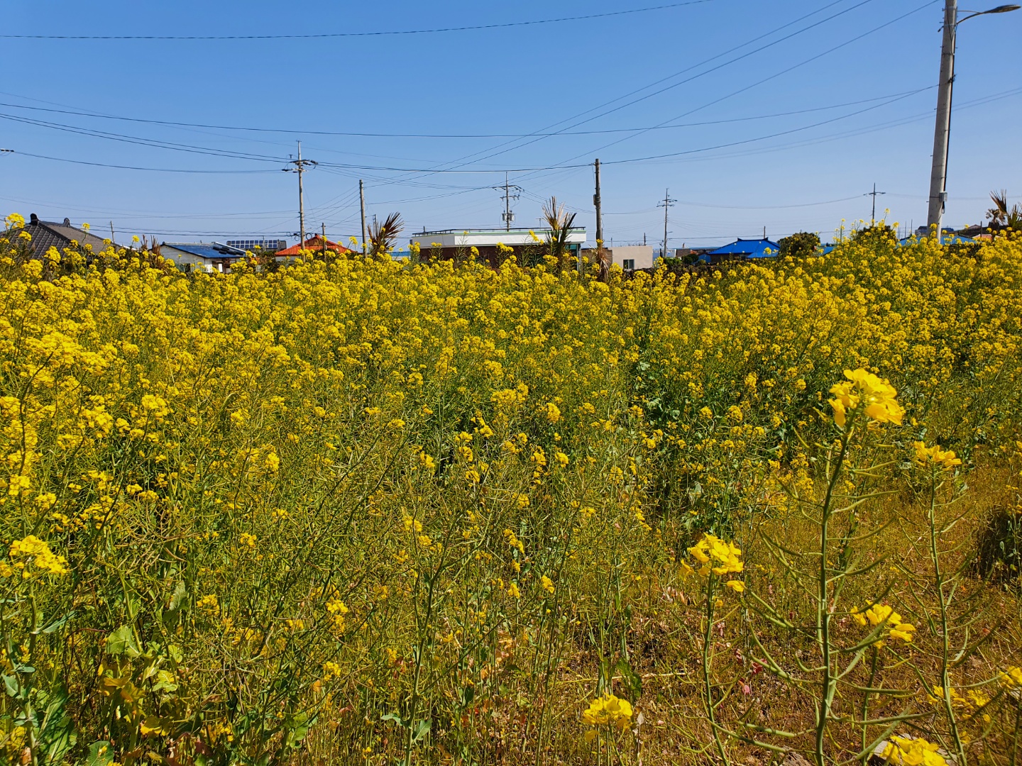 이집 주인 분이 집 단장을 하고 계시더라구요, 집 안으로는 못들어가고 밖에서 사진을 찍고 있으니 안에 들어가 찍어도 된다고 허락헤주셔서 마당에 들어가 원없이 사진 찍으면서 유채꽃의 아름다움을 담았습니다.