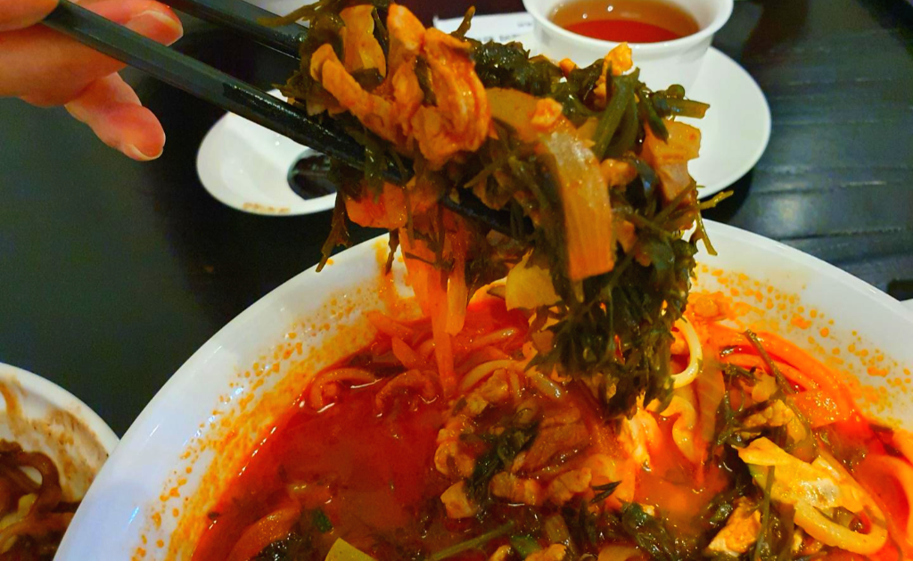 국믈을 먼저 먹어보았어요. 매콤해 보이지만 생각처럼 많이 맵지 않아 매운걸 못먹는 저도 먹을 수 있겠더라구요.