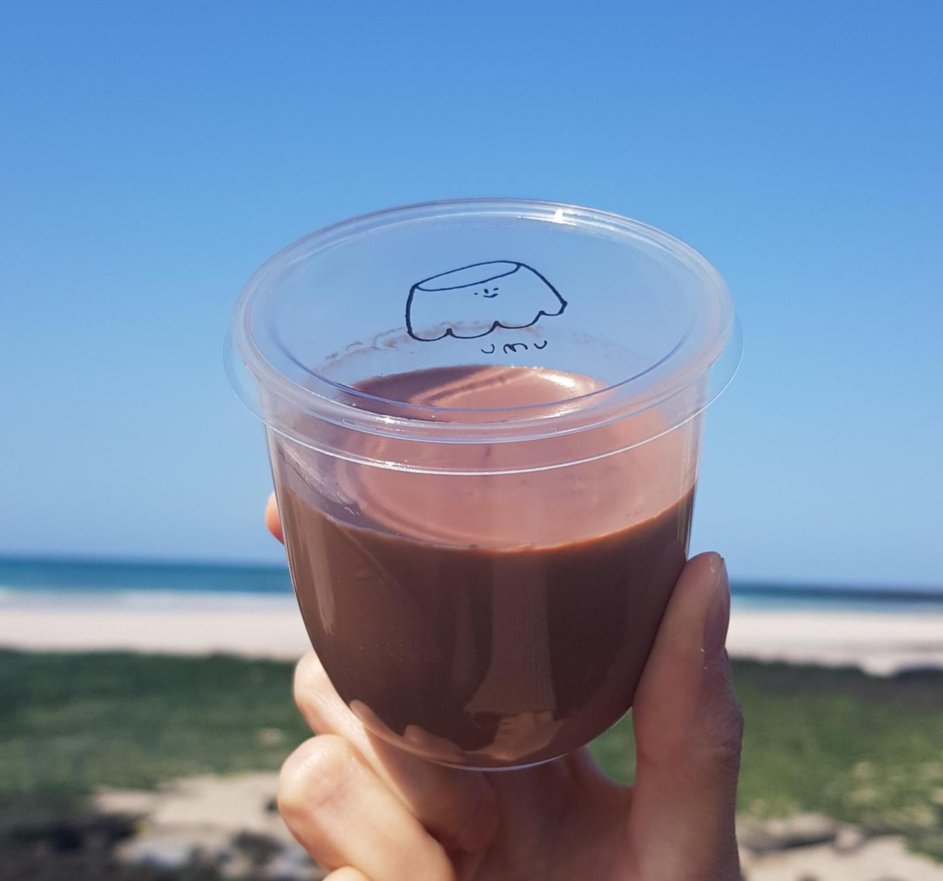 카스타드 푸딩을 한입 먹어보니 약간 깊이 있는 순두부 아이스크림맛이 났어요. 푸딩의 탱글한 식감은 유지되며 차가워서 순두부맛 아이스크림이 연상되더라구요. 먹고 나서도 오래 기억 되는 맛이었어요.