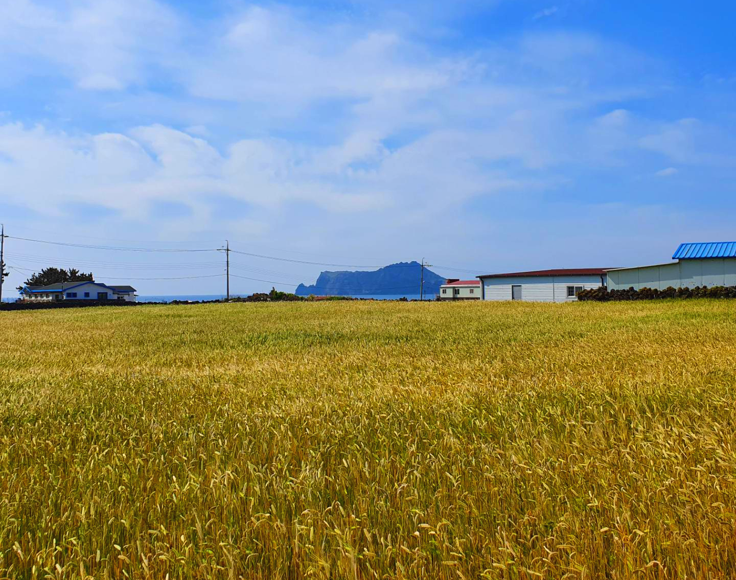 우리가 먼저 간 곳은 우도봉인데 입구에 벌써 보리가 노랗게 익어 가을 느낌을 물씬 풍기는 것 같아요.