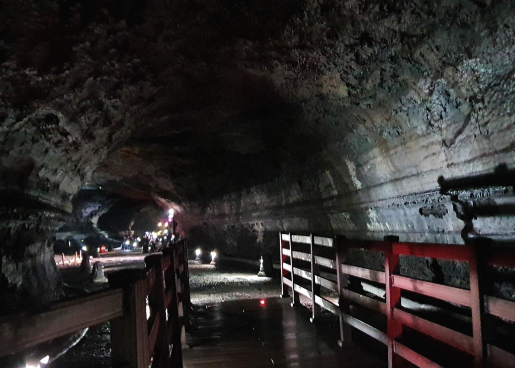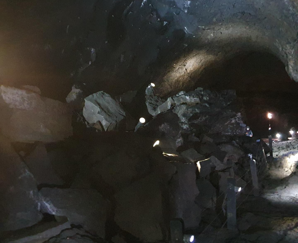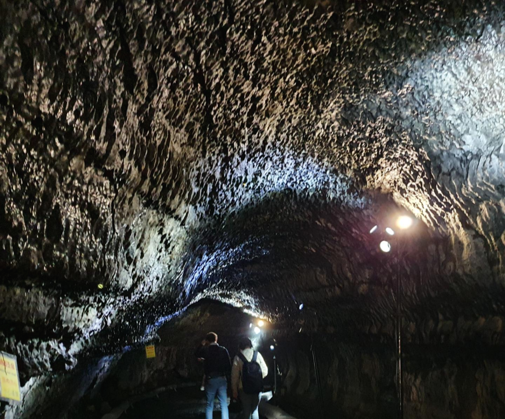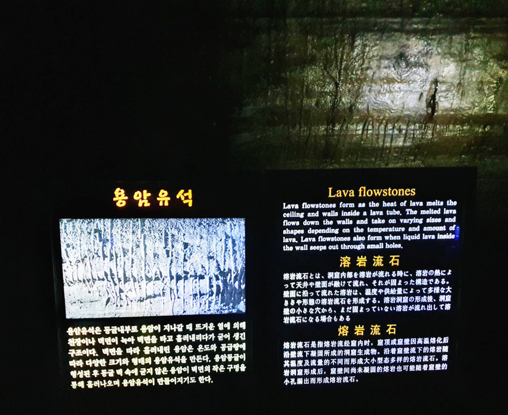 용암이 동굴에 채워져 있다가 높이가 낮아지면서 천장에 붙어있던 용암들이 떨어져 돌고드름 모양의 용암 종유석을 만들었다고 합니다.
