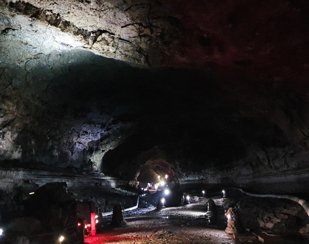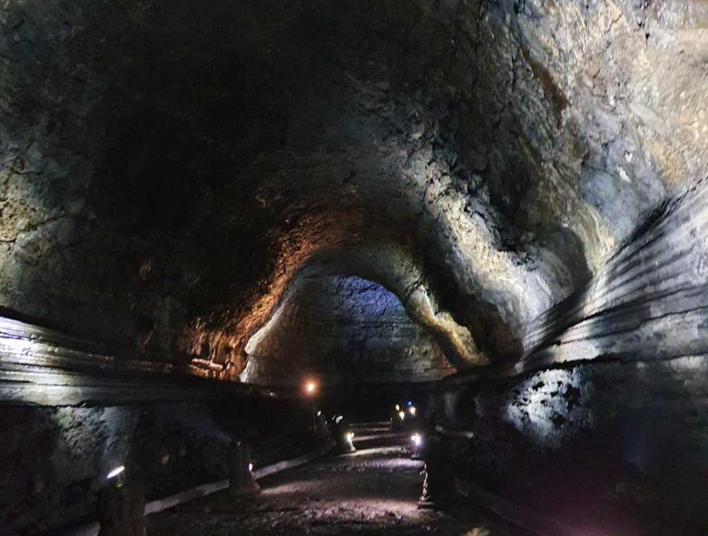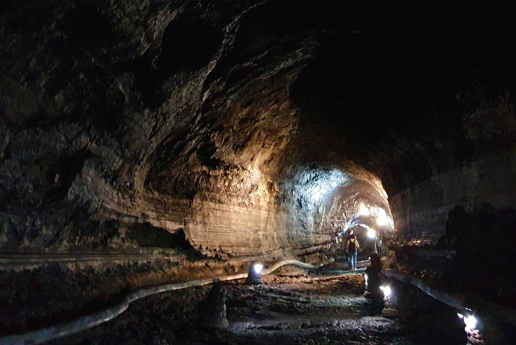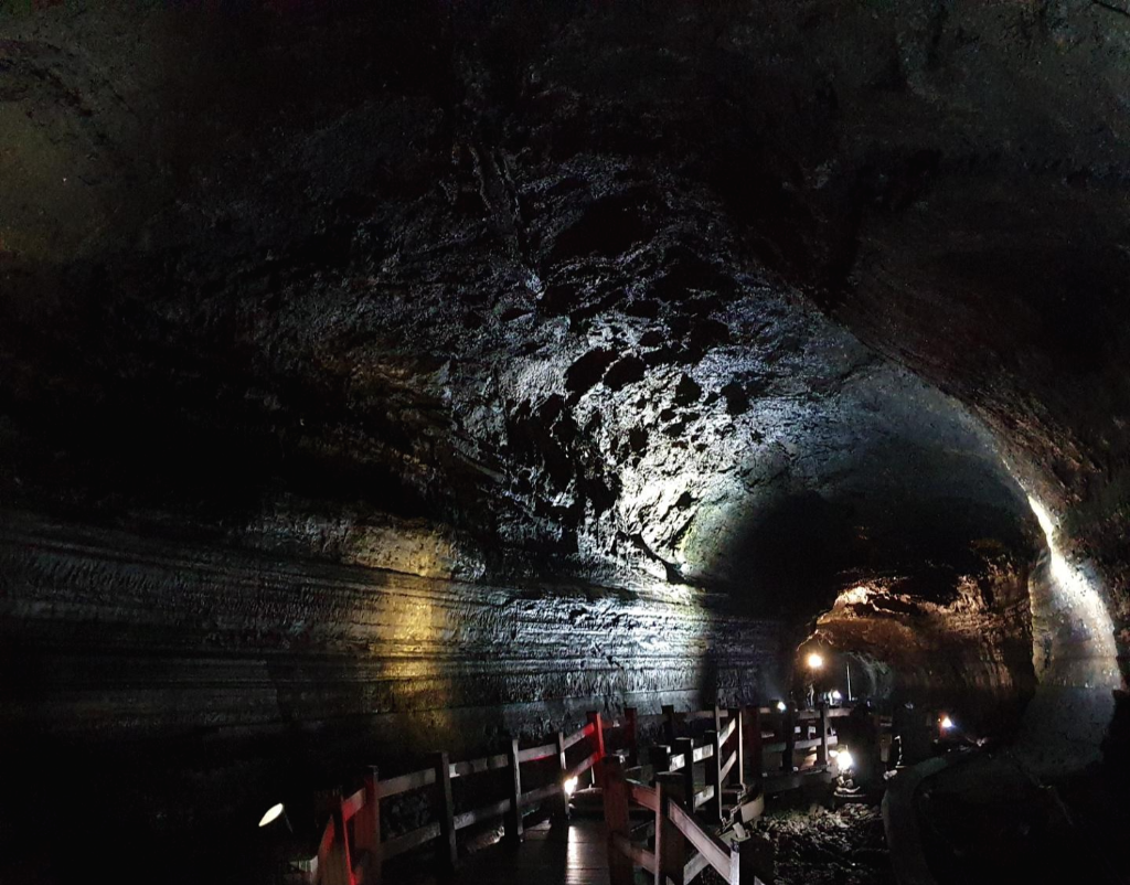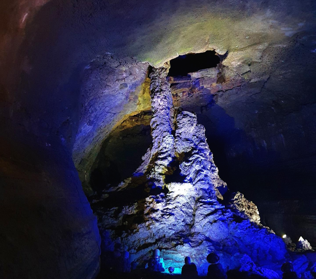 용암이 동굴에 채워져 있다가 높이가 낮아지면서 천장에 붙어있던 용암들이 떨어져 돌고드름 모양의 용암 종유석을 만들었다고 합니다.