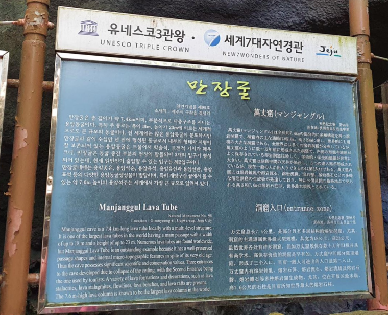 천연동굴 중 최초로 천연기념물로 지정된 김녕굴, 만장굴을 비롯한 벵뒤굴, 용천동굴 등 7월 유네스코의 세계자연유산에 등재되었다고 합니다.