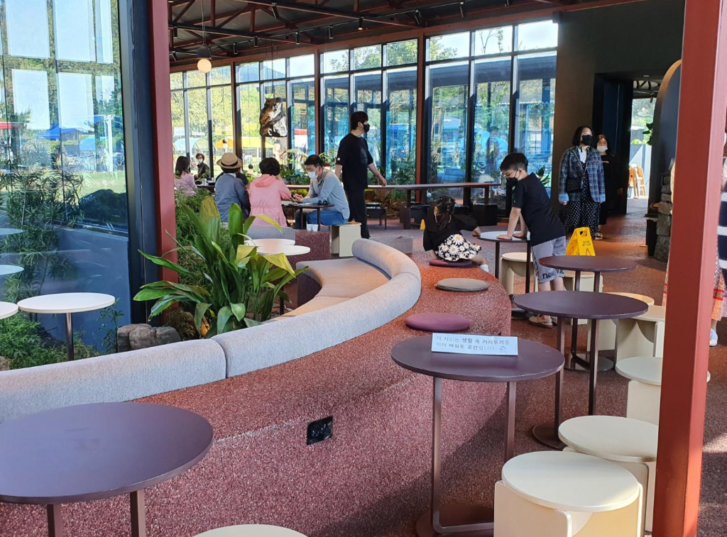 여행객들이 실내며 실외에 자리잡고 즐기시고 계시더라구요.