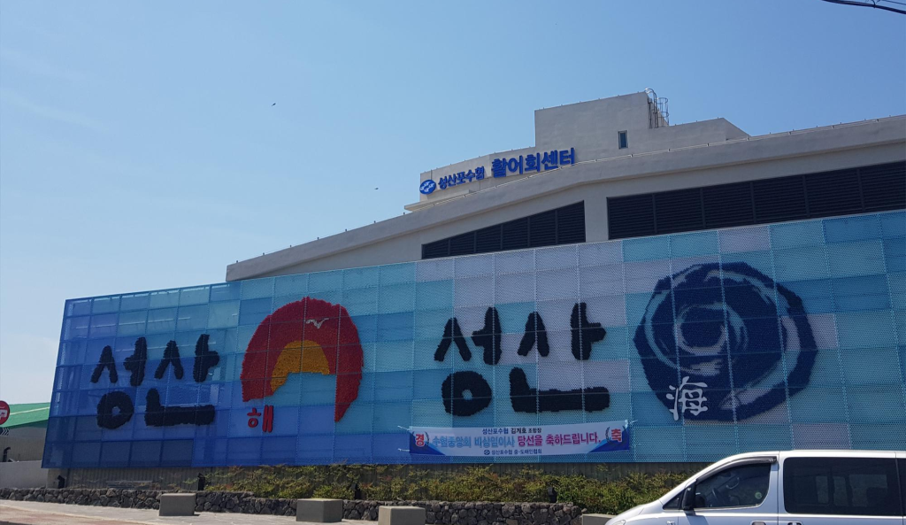 성산포수협활어회센터는 성산항 들어가는 입구에 자리잡고 있어 쉽게 찾을 수 있는 곳입니다.