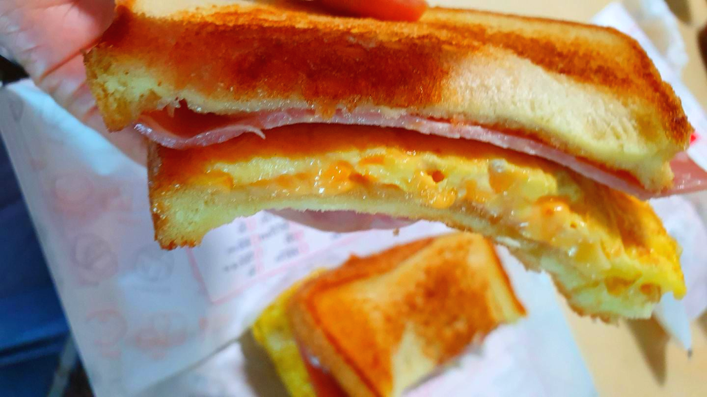 토스트의 겉은 바삭하면서 짭조름한 치즈와 베이컨, 계란, 해쉬브라운에 이삭토스트의 달콤한 소스까지
