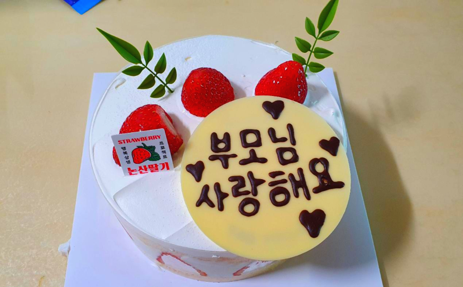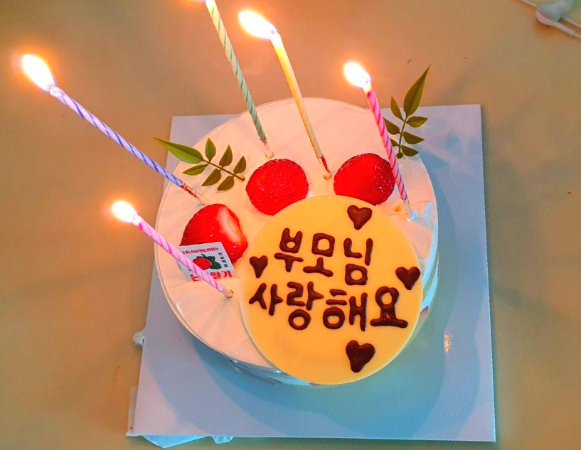 아들, 딸들의 사랑을 느낄 수 있어 오늘 먹은 케이크는 다른 날보다 더 맛있었습니다.