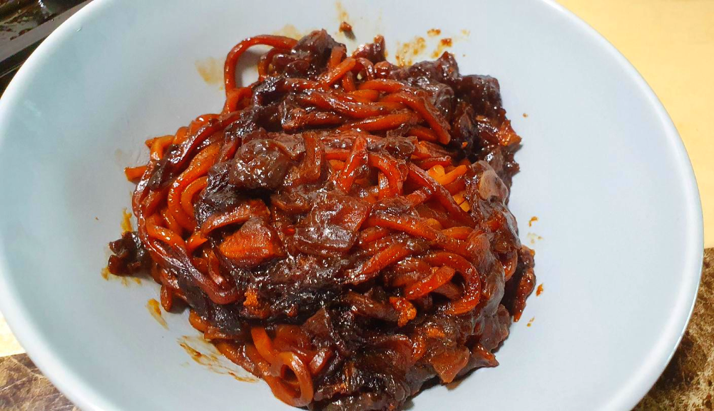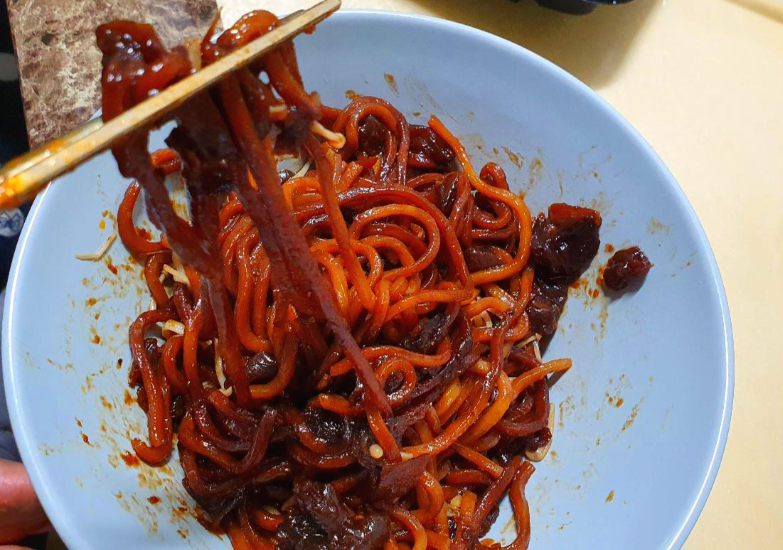 정통 짜장면을 전자레인지에 7분 돌린 모습입니다.