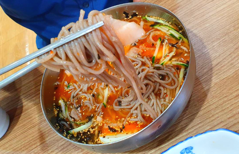 비빔메밀국수는 면발도 굵고 탱글탱글 한 것이 씹히는 식감도 좋고 새콤달콤 정말 맛있었어요,