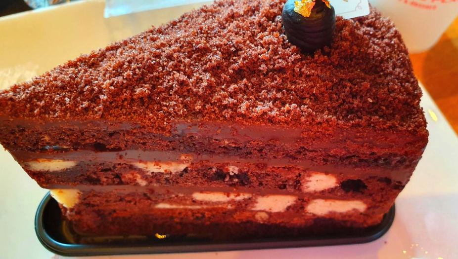 벨기에산 다크 초콜릿 가나슈와 시트 사이사이에 초코 크런치, 크럼블이 들어있어 바삭한 식감을 더해 정말 맛있는 케이크입니다.