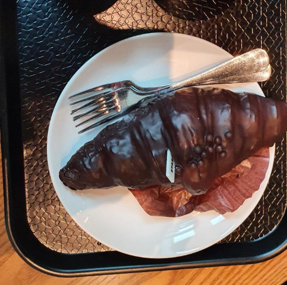 부드럽고 고소한 우유 생크림이 가득 든 달콤한 초콜릿 코팅을 더한 크루아상입니다