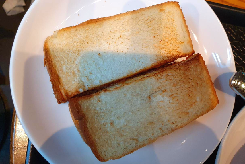 한입 먹어보니 연유가 발린 빵은 부드러웠는데 안 발린 부분은 그렇게 부드럽지는 않고 약간 퍽퍽했어요.