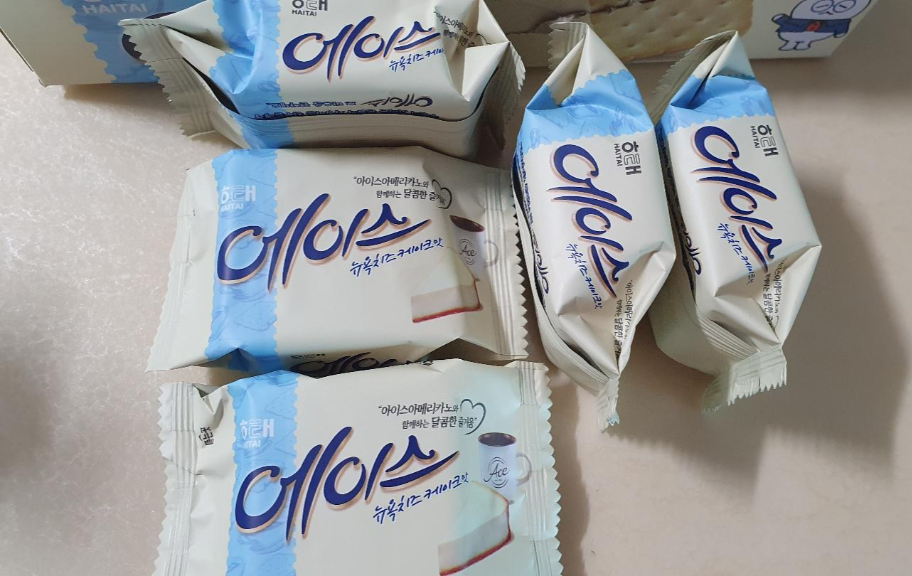 해태제과에서 새로운 맛으로'뉴욕치즈케이크 맛 에이스를 출시했습니다.