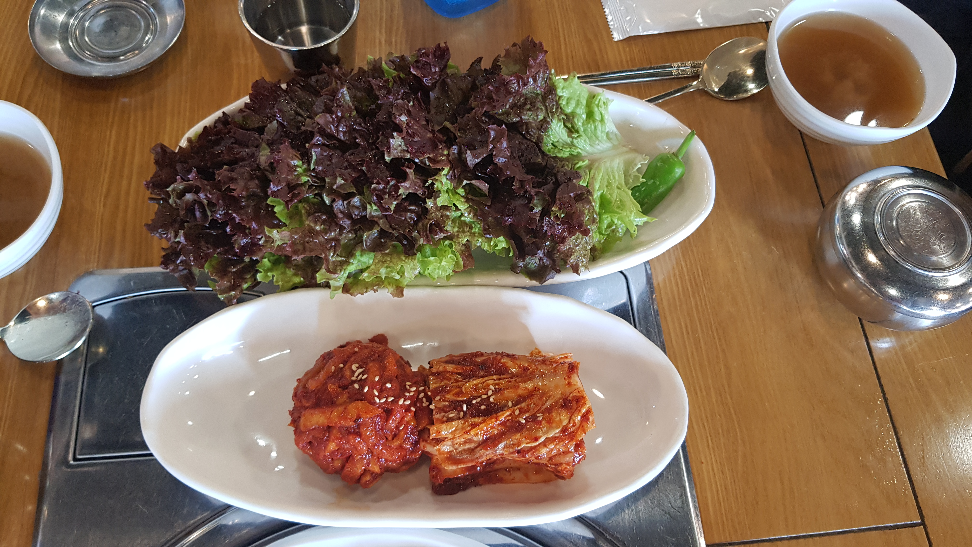 보쌈을 보니 양이 작년보다 줄어들었더라구요. 역시 물가가 올라 그런 것이겠지요. 밥을 적게 먹는 저희들에게는 적당한 양이지만요. 밥 양이 많으신 남자분들은 부족할 것 같은데 그런 분들을 타깃으로 특보쌈 정식이 나왔어요. 더 많은 양을 드시고 싶으면 특보쌈 정식으로 시키시면 될 것 같습니다.