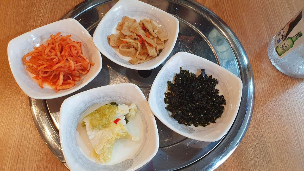 기본반찬으로 무생채, 백김치, 오뎅볶음, 김자반이 나왔습니다