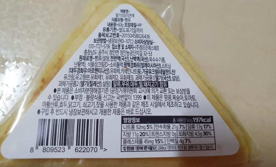 총내용량은 60g에 197kcal 가격은 2000원입니다.