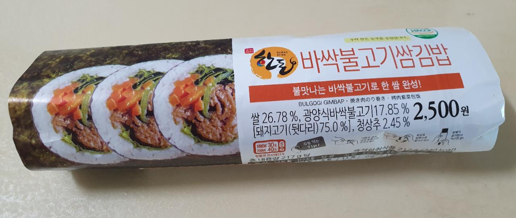 편의점 김밥이 다 맛있는 건 아니지만 한돈 바싹불고기쌈 김밥은 제입에 착감기는게 맛있습니다.