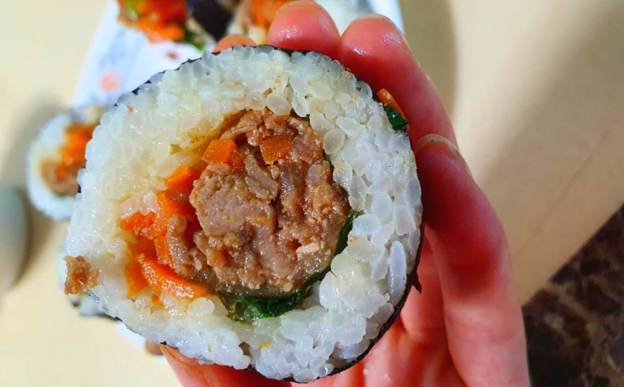 한돈 바싹불고기쌈 김밥은 불맛나는 광양식 불고기를 이용하여 만든 김밥입니다.