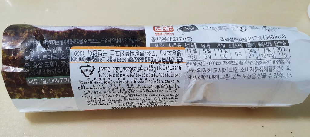 바싹불고기쌈 김밥은 총내용량은 217g에 340kcal로 칼로리가 그렇게 높지 않아 편안하게 먹을 수 있어요.