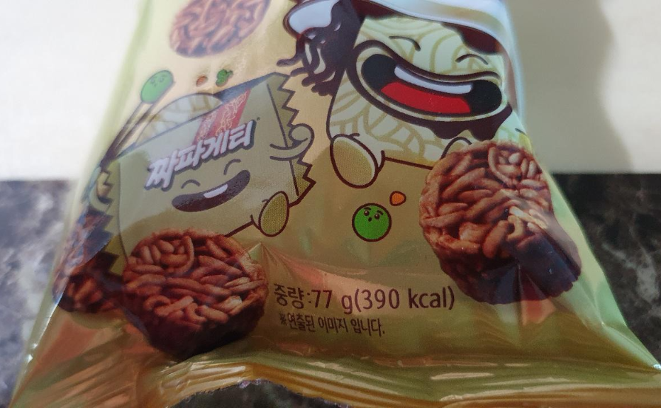 쫄병스낵 짜파게티맛은 총중량 77g에 390kcal입니다. 가격은 890원(홈플러스 기준)