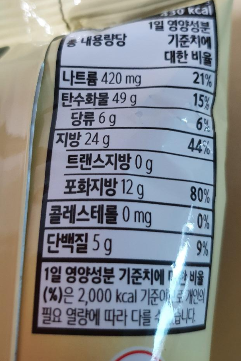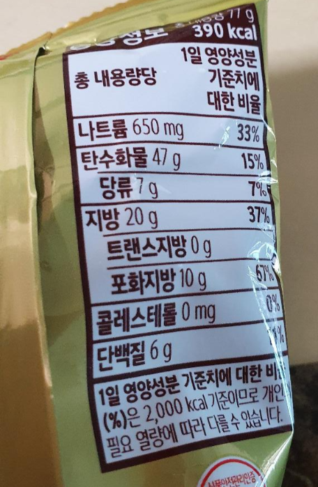 나트륨 33%, 지방 37%, 포화지방은 67%라 간식으로 조금만 먹어야겠어요