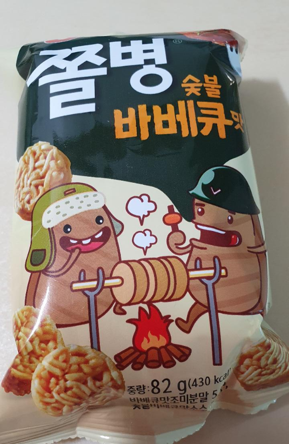 쫄병스낵 숯불바베큐 맛은 쫄병스낵 중 가장 인기있는 맛이 아닐까 싶어요.