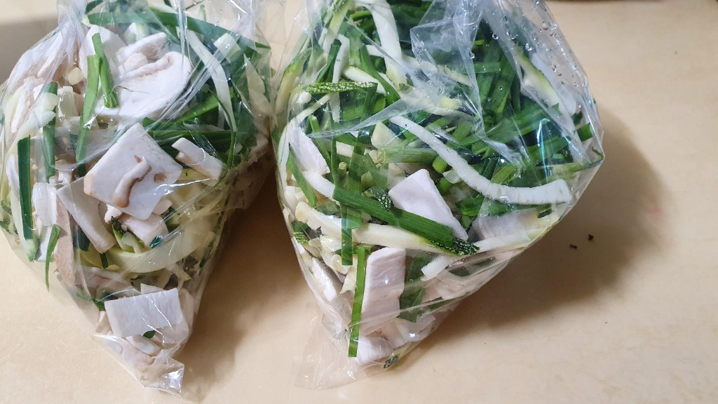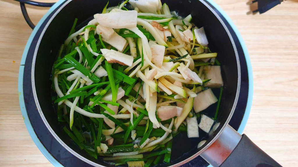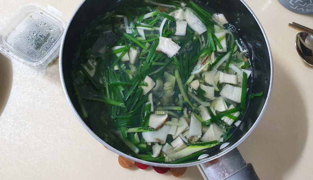 속재료는 송이벗섯이랑 부추, 애호박등이 많이도 들어갔습니다.
