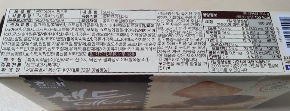 과자마다 초코가 들어가면 맛이 없을수가 없는데 해태제과에서 샌드에이스 찐 초코를 출시했다는 말에 사먹어보고 싶었습니다.