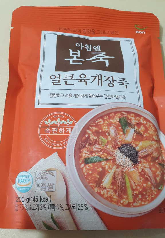 그중 제가 즐겨먹는 죽은 본죽의 단호박죽인데요. 이번에 주문하면서 본죽 얼큰육개장죽을 주문했습니다.