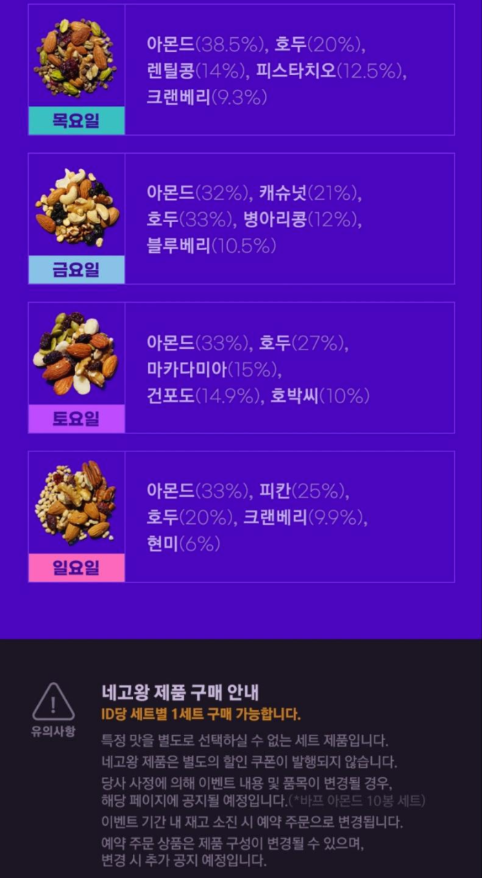 네고왕 세트는 특정 맛을 별도로 선택할 수 없어 아쉬운 점도 있지만 제가 좋아하는 맛들이라 만족합니다.