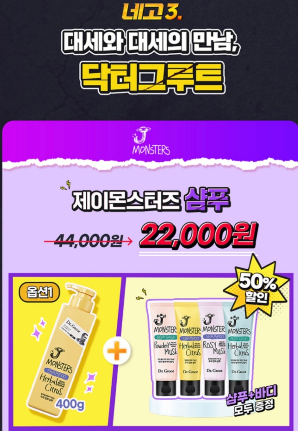 제이몬스터즈는 닥터그루트의 신제품으로 고객경험을 적극 방영한 마이크로세그멘테이션을 통해 탄생한 닥터그루트 제이몬스터즈는 청소년들의 정수리 냄새와 두피 트러블, 여드름 괸을 해결해주는 기능성 라인으로 트러블 두피를 위한 기능성 샴푸와 여드름성 피부 완화 기능성 바디워시로 구성되어 있습니다.