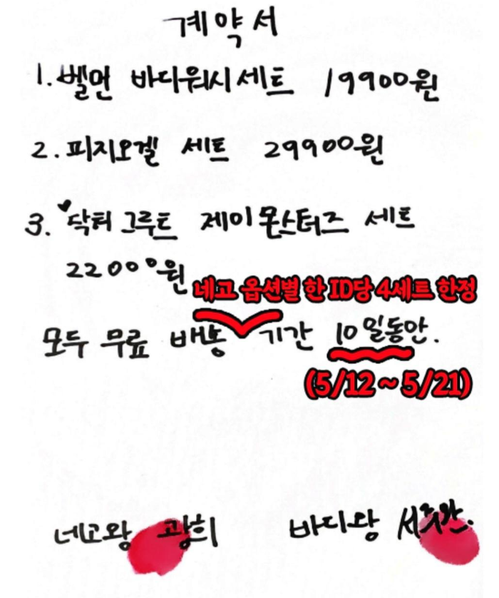 모두 무료 배송(상품별 한 ID당 4세트까지 구매 가능)