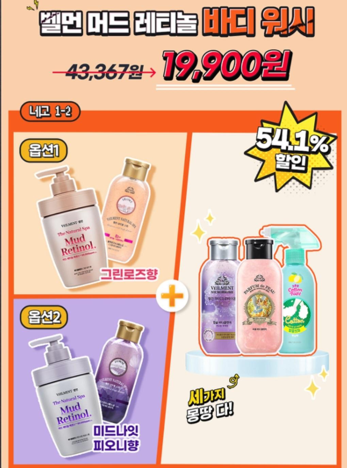 1-2 머드레티놀 바디클렌저 500ml (+바디워시 2종 + 스크럼워시 + 풋 샴푸)
