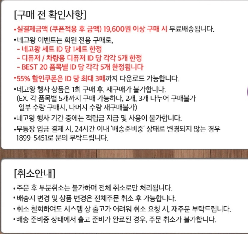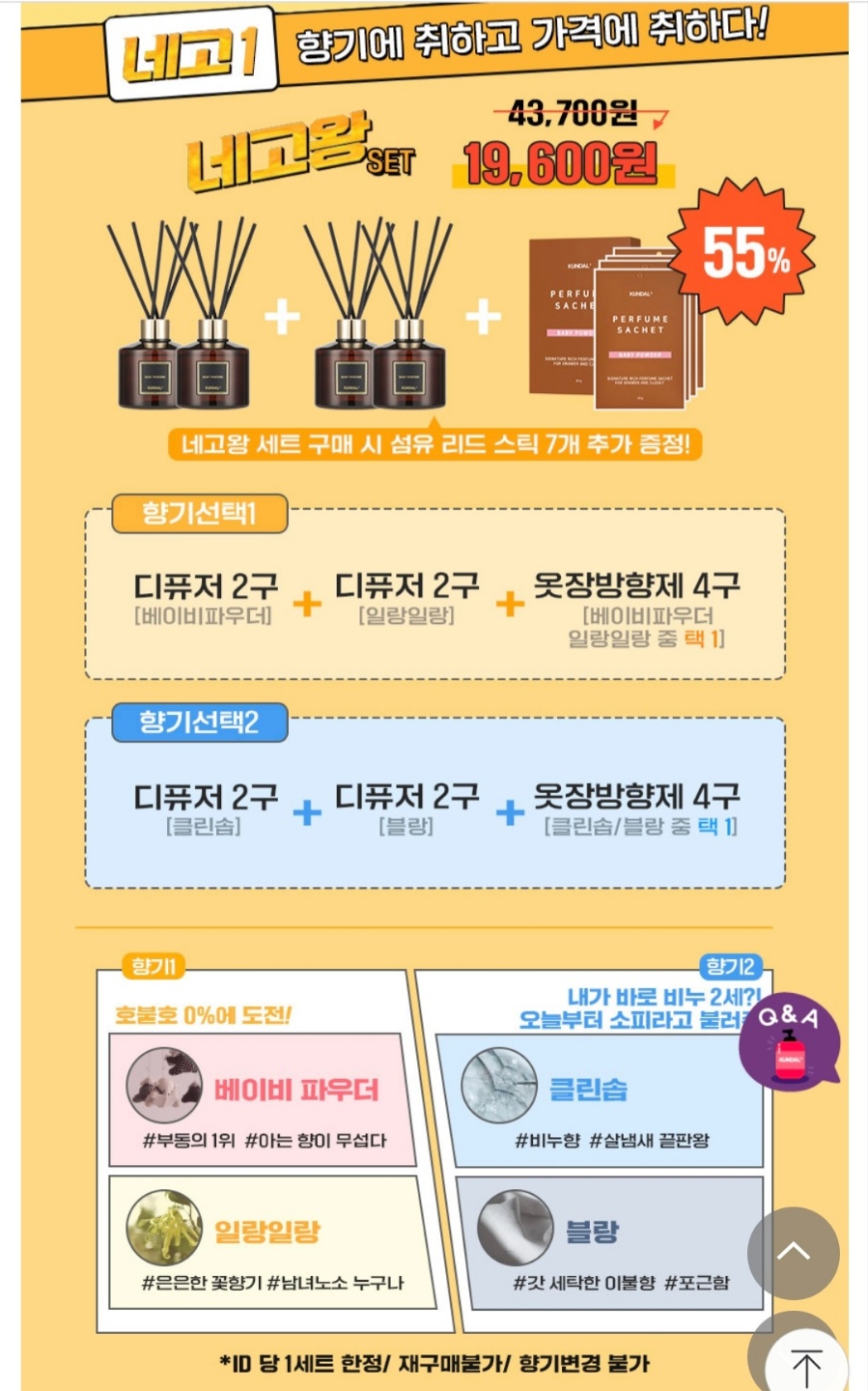 한 ID당 1 세트 구매 가능 55% 19600원, 네고왕 세트 구매시 섬유 리드 스틱 7개 추가 증정