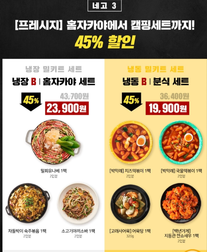 사실 물가가 올라도 너무 많이 올라 재료들을 하나하나 사는 것 보다 밀키트 제품 하나 사는게 훨씬 저렴하게 느껴지는데 젊은 분들이나 혼밥 하시는 분들에게 희소식이 아닐까 합니다.