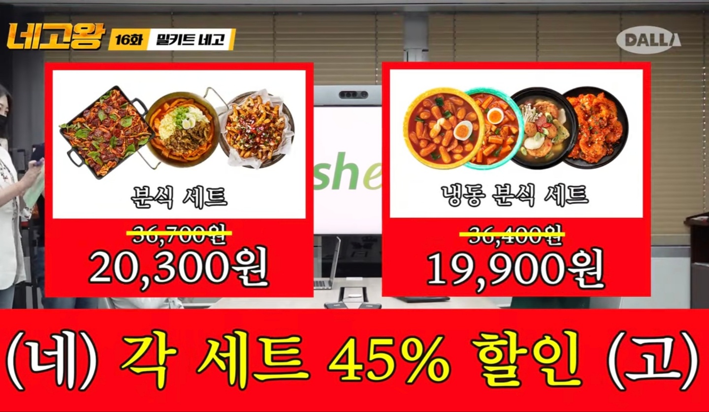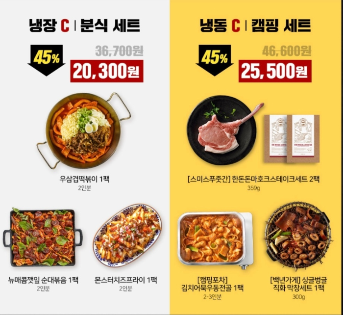 분식 A/B 세트(냉장 분식세트 우삼겹떡볶이, 뉴 매콤깻잎 순대볶음, 몬스타치즈프라이) 20300원,