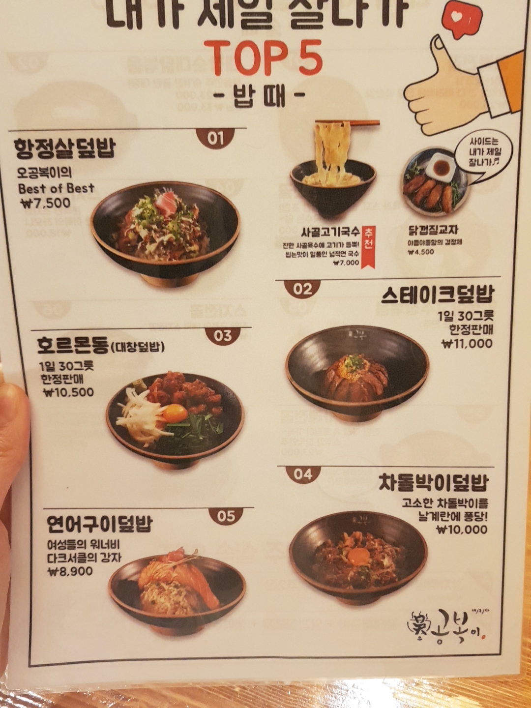 전포동맛집 오공복이는 덮밥과 국수 중심으로 판매하며 낮에는 밥집, 저녁에는 술집을 운영하고 있습니다. 가맹점도 여러곳에 있는 걸로 알고있으니 가까운 곳에 가셔도 될것 같네요 (서면에는 롯데백화점앞이랑 전포거리에 한군데, 총 두군데가 있어요).
