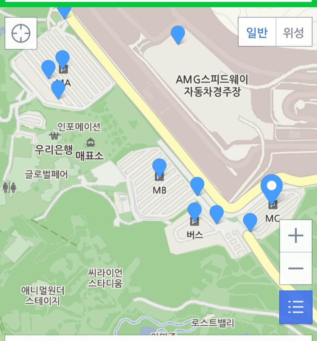 MA MB MC 3개가 에버랜드에서 가까운 주차장이고, 나머지 주차장들은 에버랜드 버스를 이용해야 된답니다.