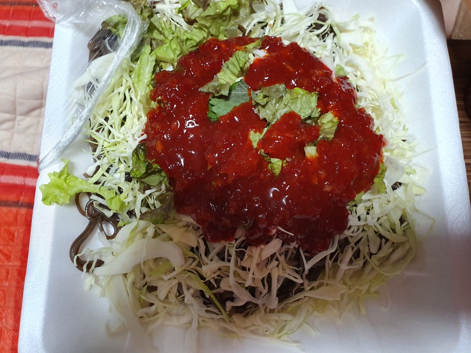 내사랑 족발집은 보쌈, 족발도 맛있지만 서비스로 나오는 막국수도 새콤달콤해 맛있어요. 물론, 배달해오는 동안 면이 불었지만, 즉석에서 드시면 더 맛있습니다. 족발을 시키면 뼈 해장국이 서비스로 나온답니다.