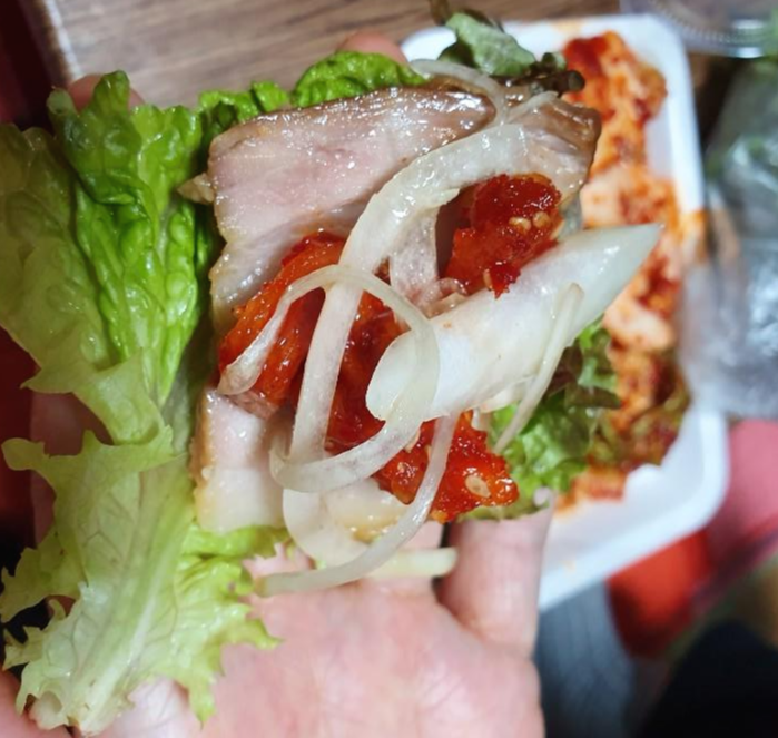 한 쌈 가득 싸서 먹으며 보쌈을 즐겼는데요, 부드럽고 야들야들 먹는내내 내사랑 족발 집이 왜 인기가 있는 줄 알겠더라구요. 다시 먹을 의향이 있냐고 묻는다면 당연 100%로 다시 사먹을 의향이 있습니다.