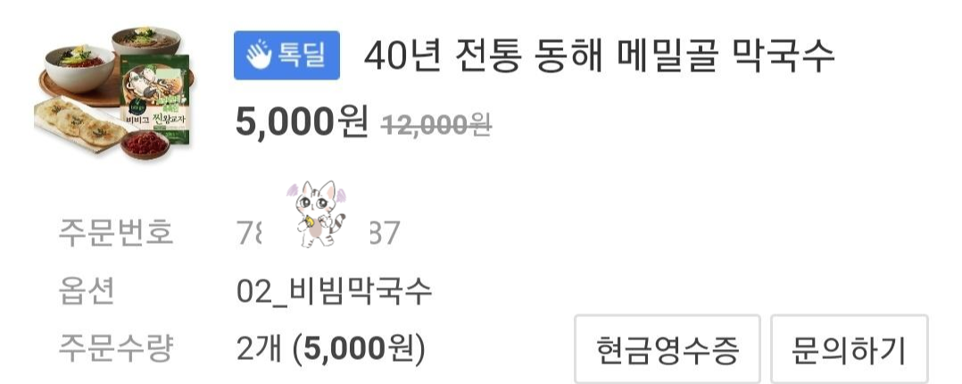 메밀막국수는 많은 양만 주문할 수 있는 줄 알았는데 적은 양도 주문이 가능해 편리하더라구요, 제가 카카오톡 톡딜로 주문을 했는데요 개당 2500원이고 4개이상 사면 메밀골 동해 막국수 엄할머니 명태식혜를 한봉 서비스로 따라와서 4봉을 시켜봤어요. 배달료는 무료였습니다.