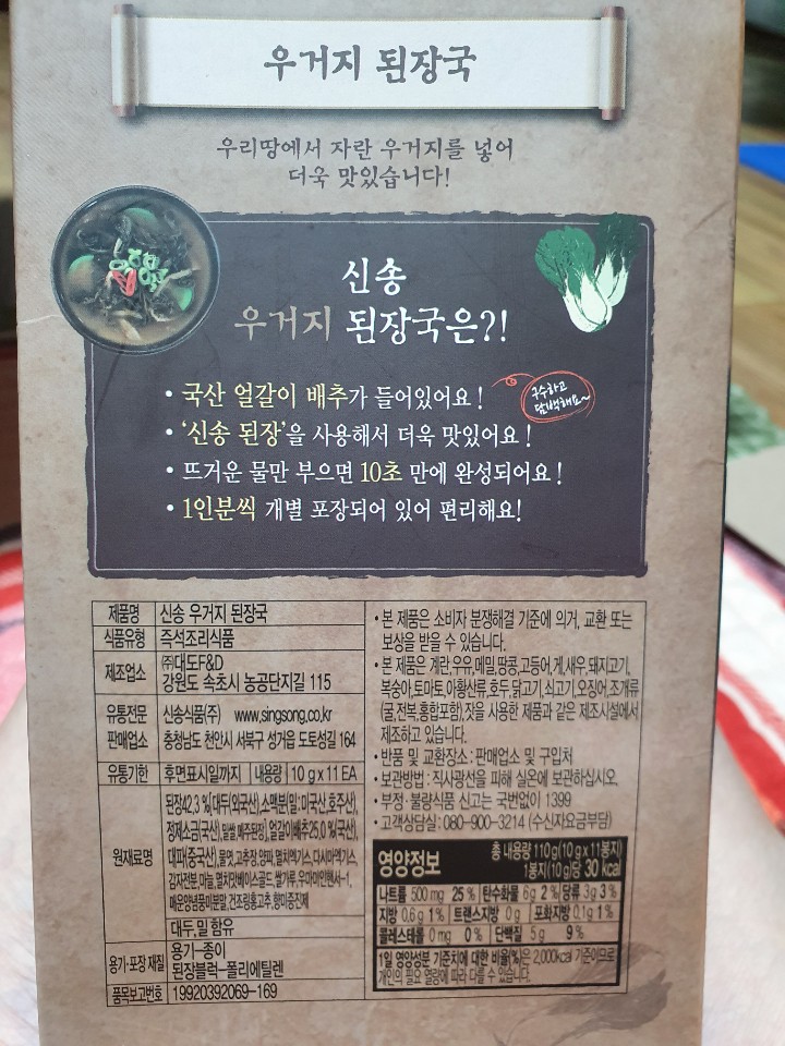 남편에게 우거지 된장국을 먹어보라고 하니 물양이 작다며 뜨거운 물을 조금 더 부어 먹었는데 단백하니 맛있다면서 간편해서 지리산 종주갈때 가져가면 좋겠다고 하더라구요.