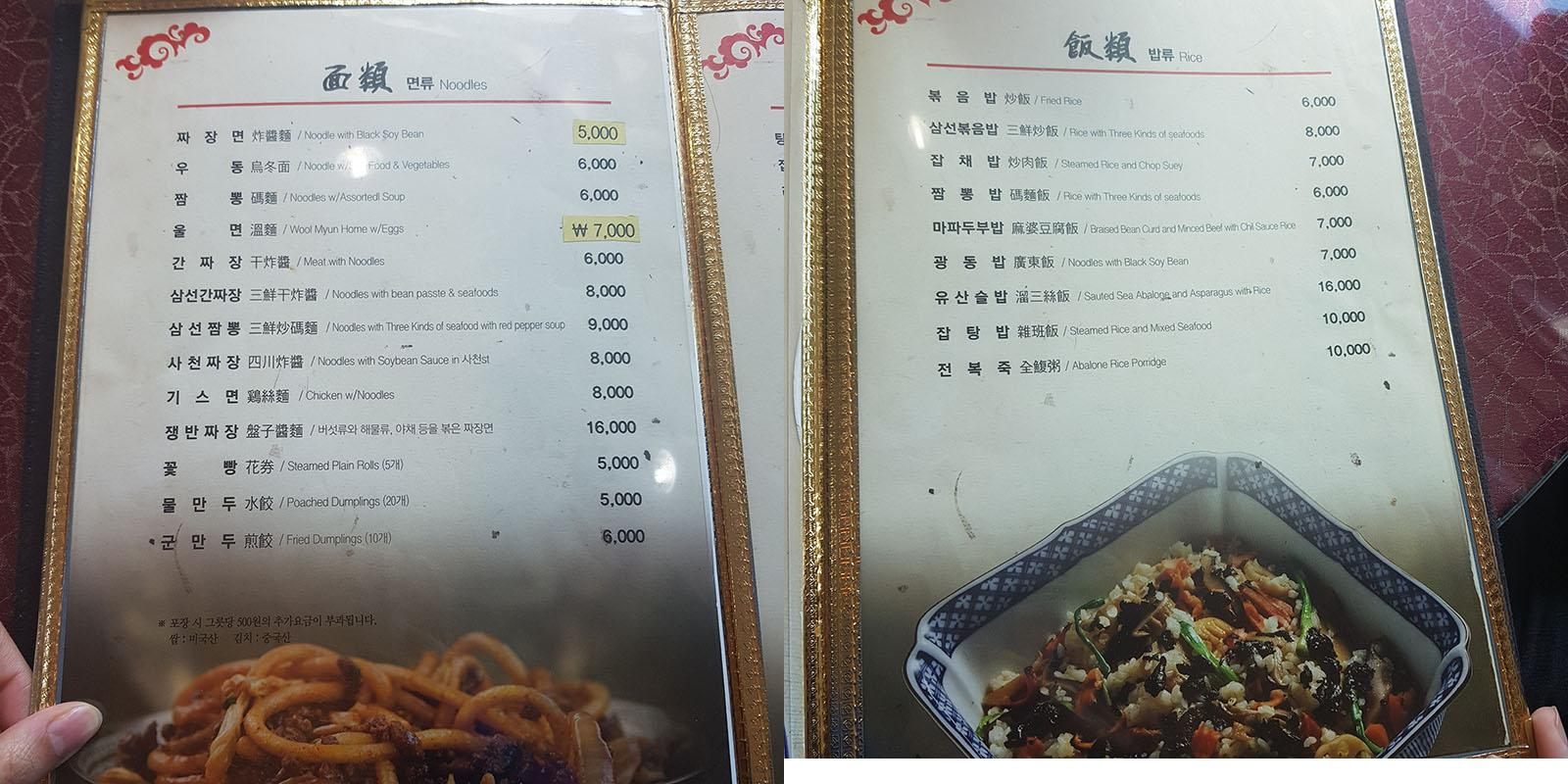 저희는 자장면(5000원) 2개, 광동밥(7000원) 2개, 탕수육 중(20000원)자를 시켰습니다. 가격은 참 착한 것 같습니다.